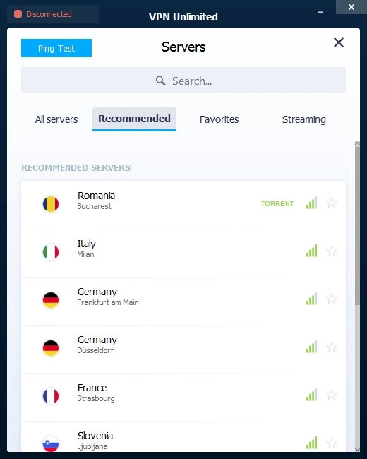 シンプルで直感的なインターフェースを備えたこのアプリは、追加の設定なしで素早くスムーズに操作できます。プログラムをインストールしてアイコンをクリックするだけで起動できます。次に、「開始」ボタンをクリックして接続を設定します。「設定」タブからお好みの場所を選択できます。ストリーミング、ゲームなど、好みに合わせて設定を選択できます。