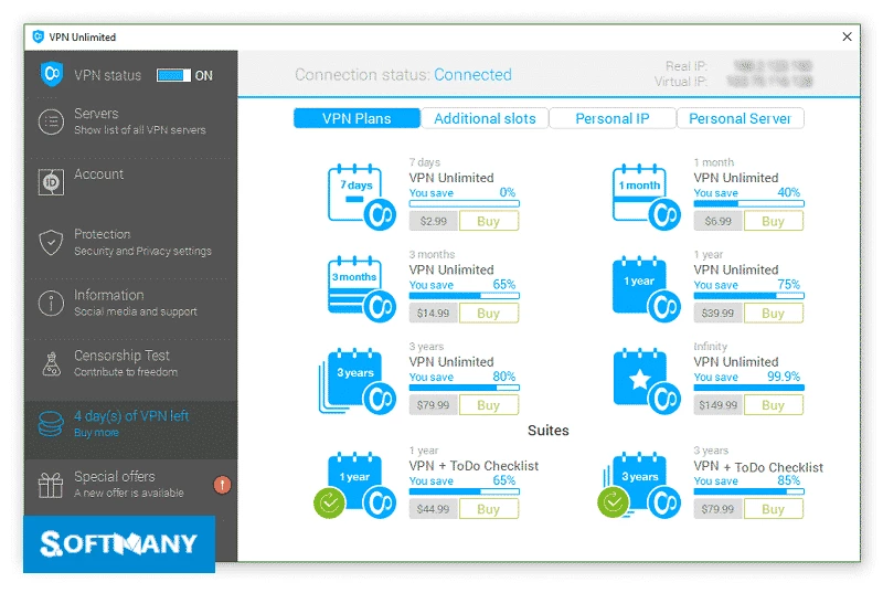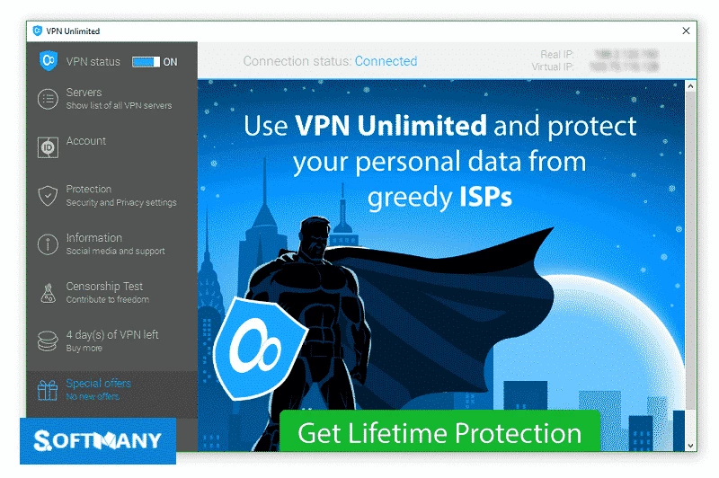 VPN Unlimitedは、オンラインセキュリティとプライバシーを重視しながら、ミリタリーグレードの暗号化を提供する無料のクロスプラットフォームユーティリティです。地理的制限、ISP、学校、職場など、あらゆる制限を回避し、どこからでもお気に入りのコンテンツを安全に閲覧できます。