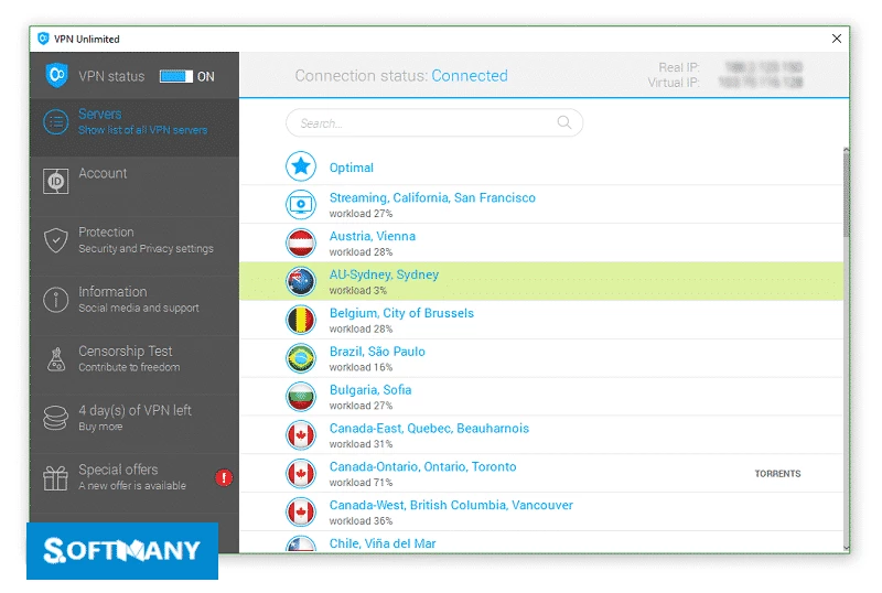 この革新的なアプリは、サーバーダイアログに専用の「ストリーミング」タブを備えており、ストリーミングマルチメディアライブラリに関連する複数のサーバーを利用できます。また、お気に入りのサーバーのリストとホワイトリストを作成し、VPN経由で追加したいネットワークと、VPN経由で接続したくないネットワークを指定することもできます。